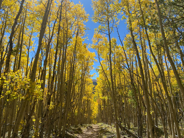 The quintessential Colorado fall experience – moving through a tunnel of golden aspen along a quiet trail.