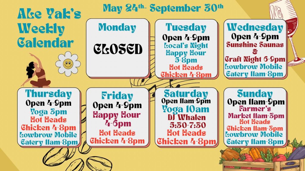 Ale Yak is a casual outdoor space with great drinks, food trucks, live music, backyard games and awesome views!