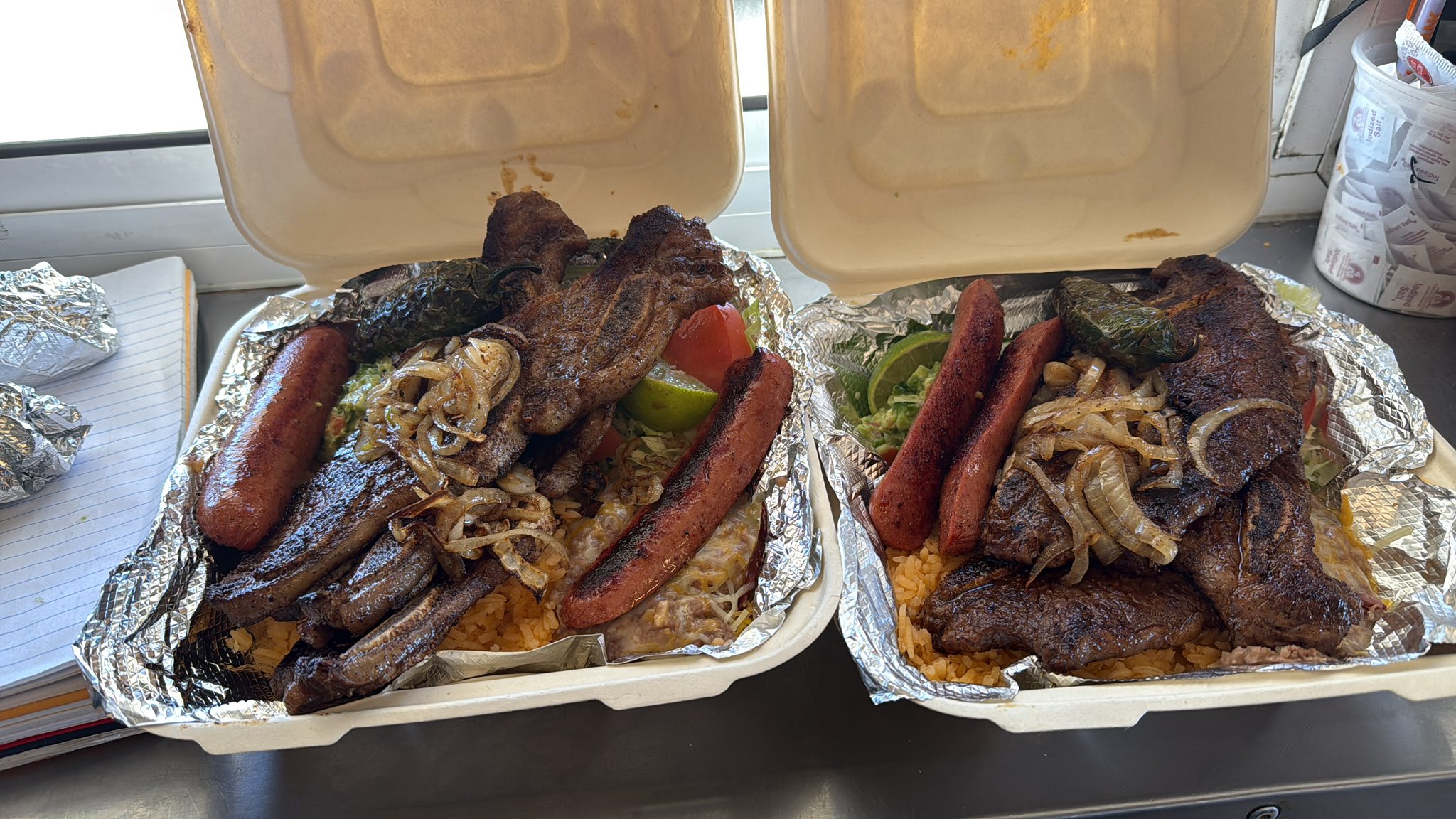 Tacos, Burritos, Tortas, Hamburgers, Quesadillas and revolving specialty items like ceviche, breaded shrimp and cheesabirrias.
