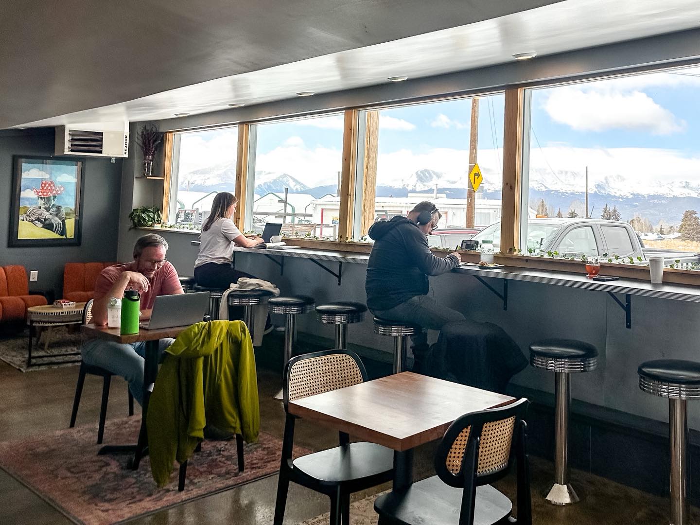Plenty of outlets for getting work done, cozy spaces to catch up with friends, and a front-row seat at the bar with some pretty incredible views. Whether you’re here to focus or hang out, we saved you a seat with an amazing mountain view.