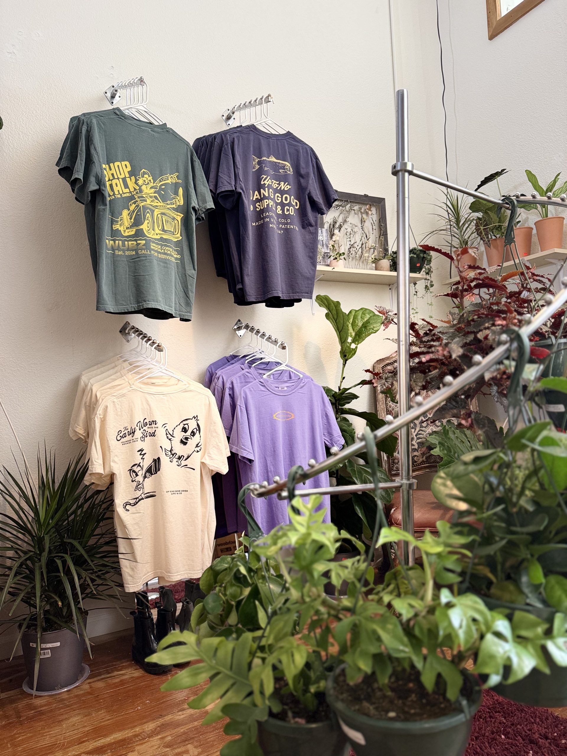Inside, you’ll find Brinegardens indoor plants and florals, along with a wide selection of Up to No Dang Good western merch and apparel, plus Wubz Garage mental-health-forward designs. The shop also features a curated mix of thrift, outdoor gear, and vinyl records, offering something unique for both locals and visitors.