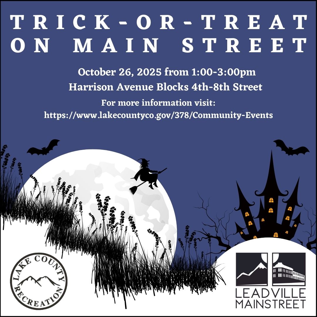Downtown Leadville Harrison Avenue, Leadville, CO, United StatesSave the Date for Leadville's Annual Trick or Treat Street on Harrison Avenue - Saturday, October 26th from 1pm to 3pm Join the Lake County Recreation Department as they partner with Leadville Mainstreet for Trick or Treat Street on Harrison Avenue. Local businesses and organizations will be hosting stops along Harrison Avenue. Harrison Avenue will […]