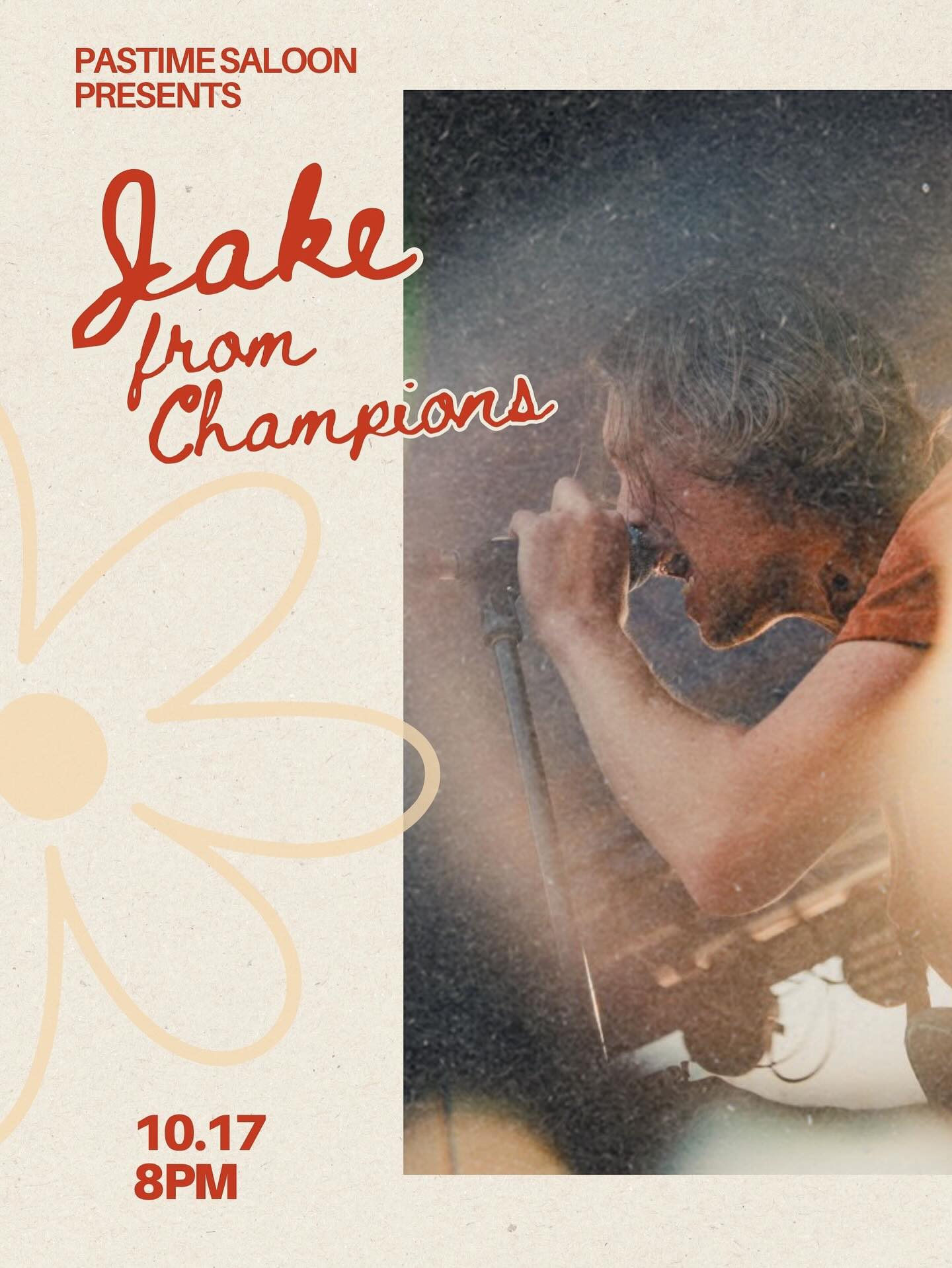 Come see Jake from Champions playing live at the Pastime Saloon starting at 8pm on Friday, October 17th
